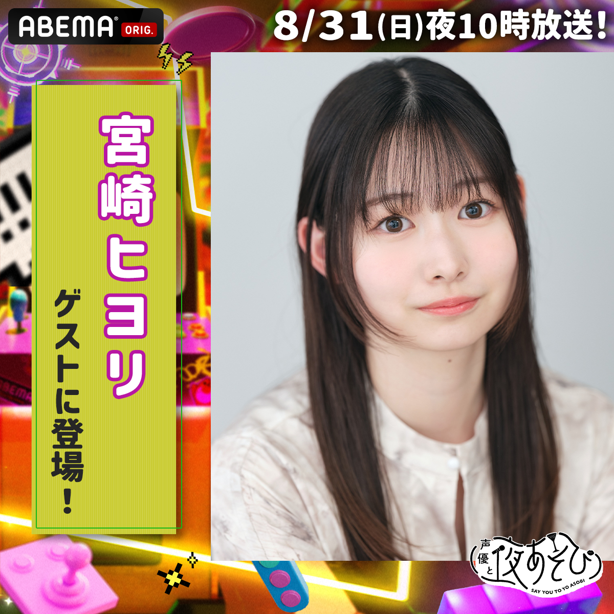 ABEMAのアニメLIVEチャンネルにて 8月31日(日) 22:00~放送の「声優と夜あそび」に、 和田役・宮崎ヒヨリさんの出演が決定いたしました。 ぜひご覧ください。